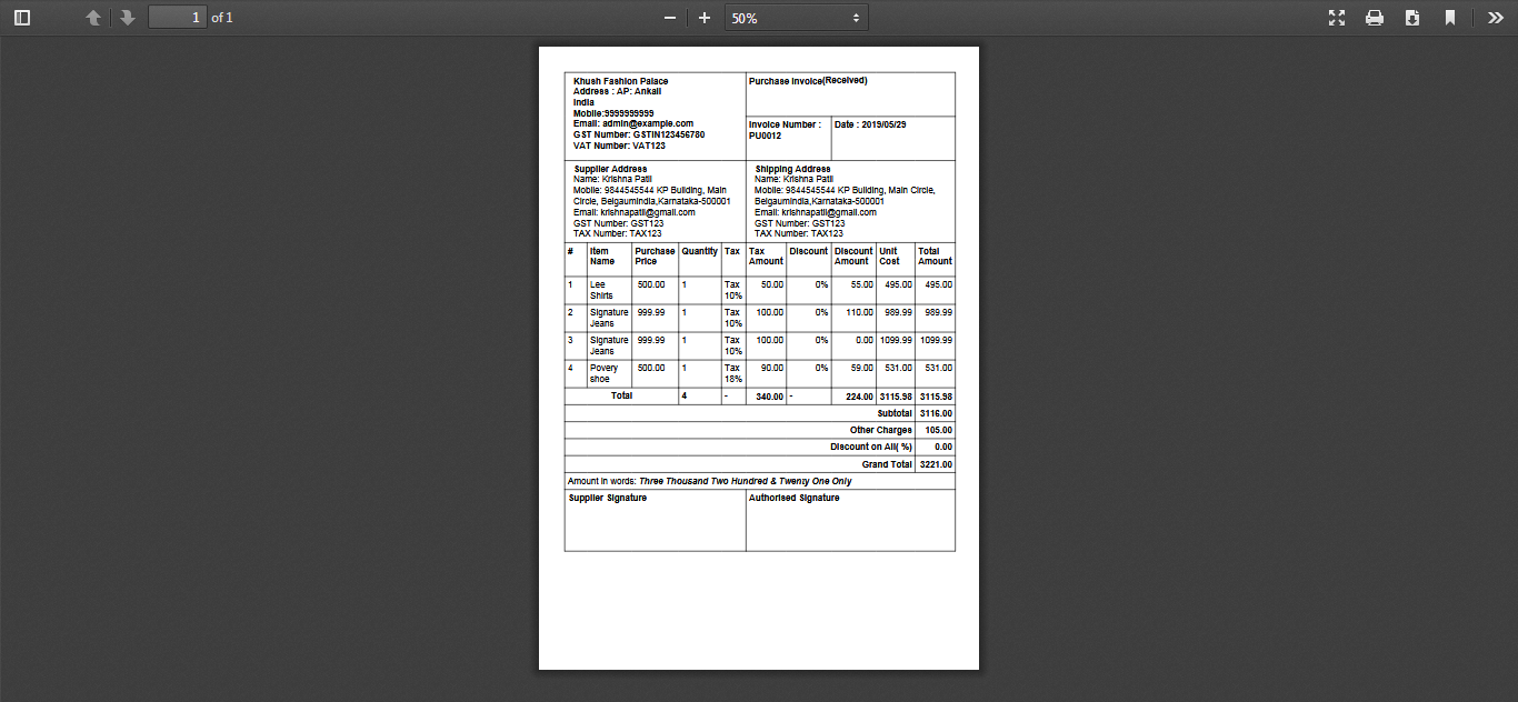 You can view the all the added Purchases list and you can Purchases list by Delete & Edit actions.